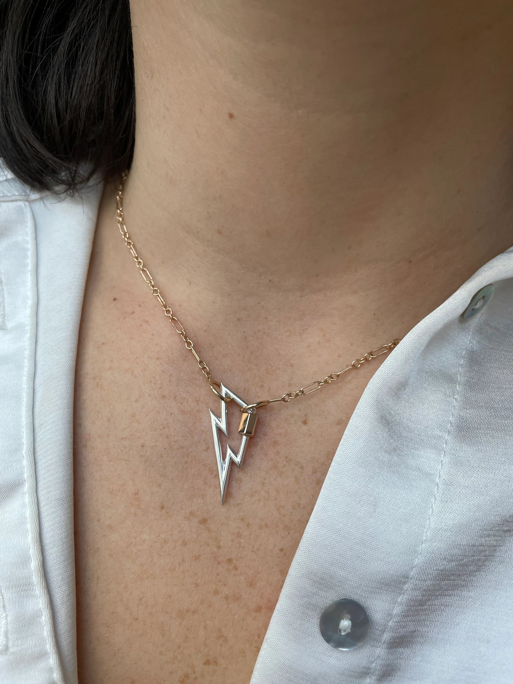 Not too delicate and not too thick. It is a classic chain delivered in a sturdy, but delicate format. The perfect intricate small chain for the smaller Locks. If a "paper clip" chain decided to dress for dinner...this would be the outcome.