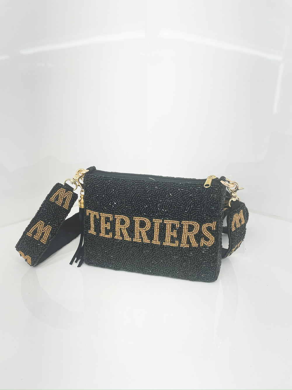 Hand beaded game day bag from Moyna! Rock your team's colors with this stylish bag you can take into the game!