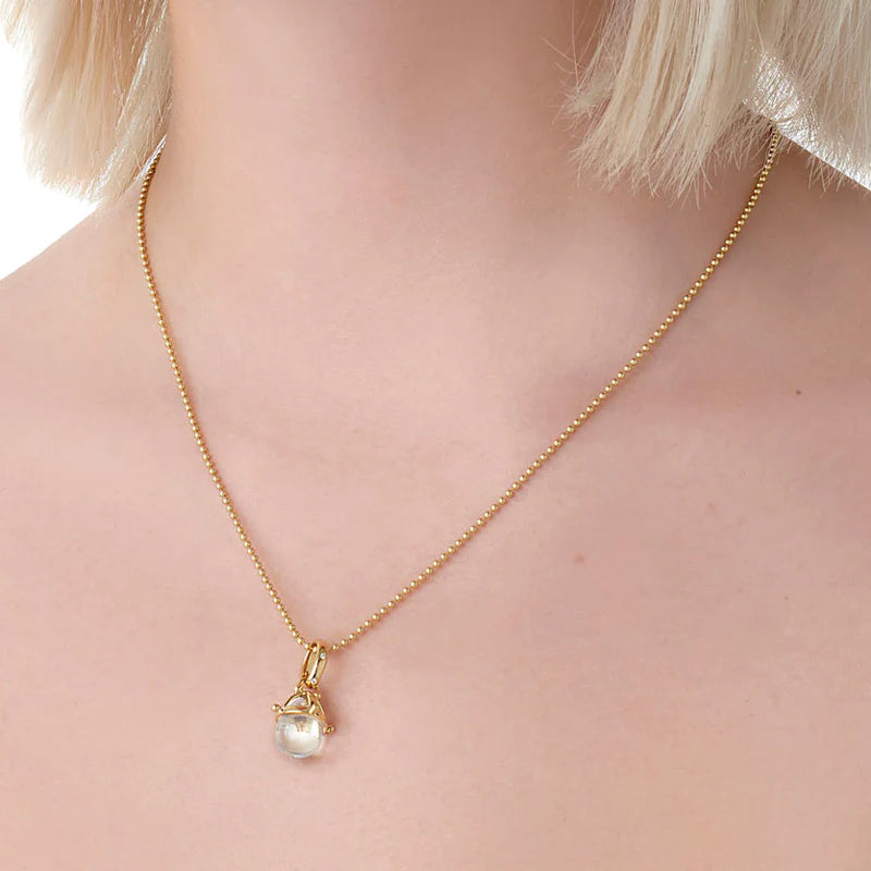 Temple St. Claire's finely polished, natural rock crystal Amulets are designed to capture and reflect your unique light. The 18K Granulated Amulet gives a playful update to the iconic gem. This piece features their signature granulation detail and brilliant diamonds.