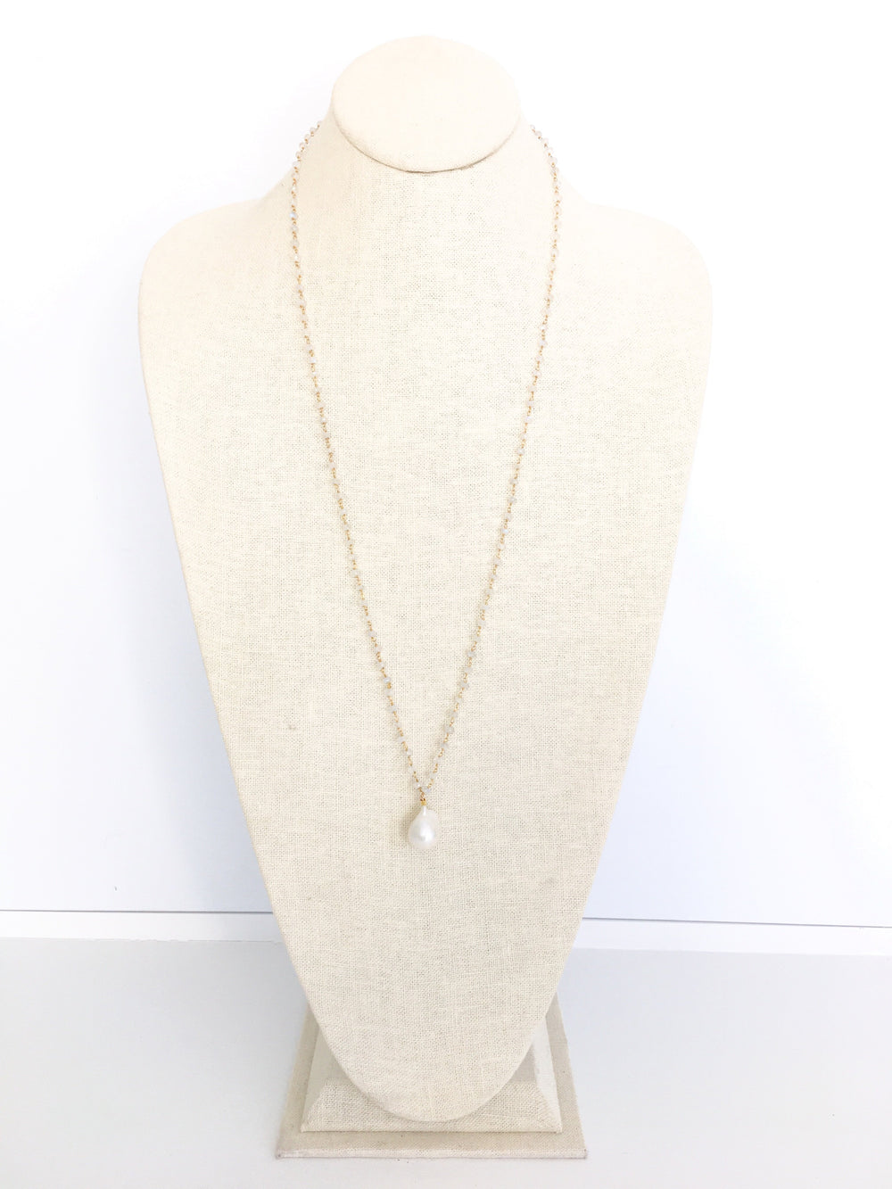 Diddi Long Necklace - White Moonstone/White Baroque Pearl