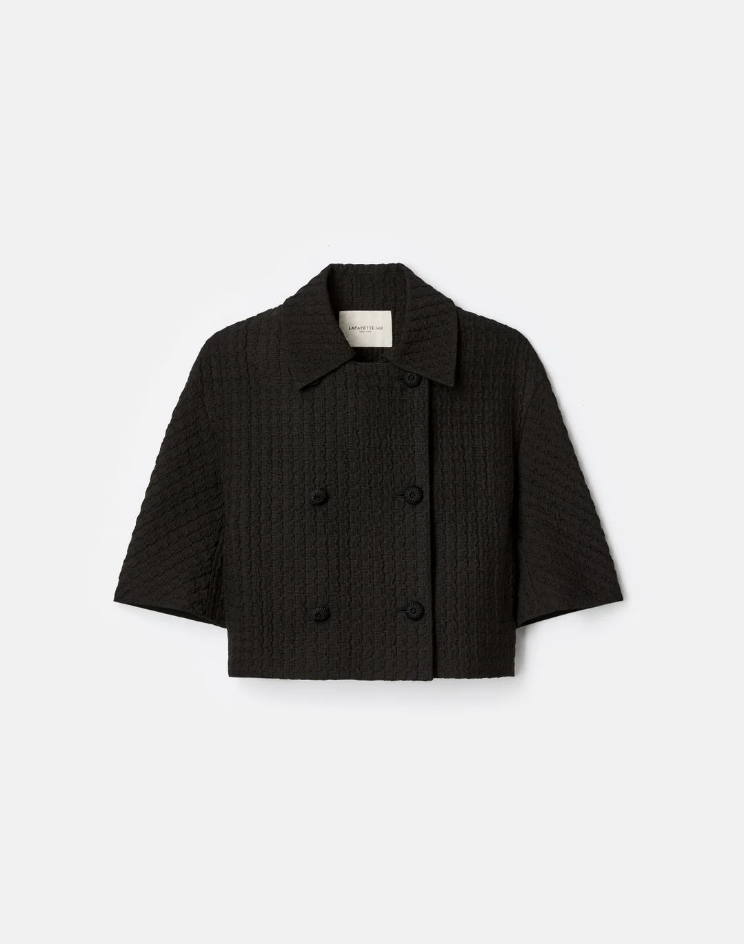 Jacquard Double Breasted Short Sleeve Jacket - Black