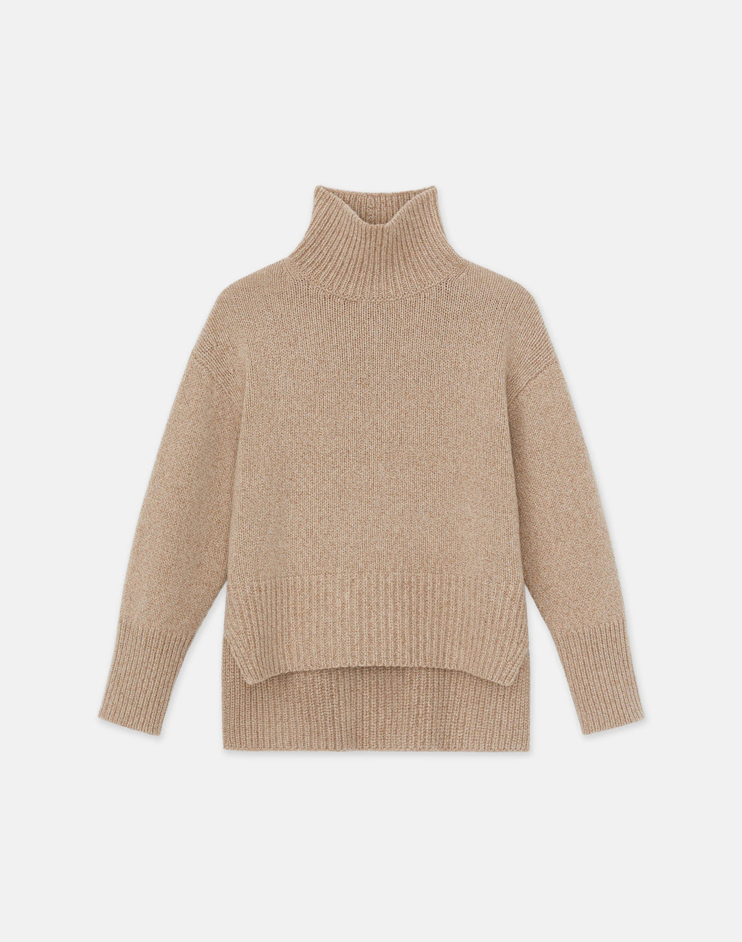 Lofty Cashmere-Wool Stand Collar Sweater - Camel Multi