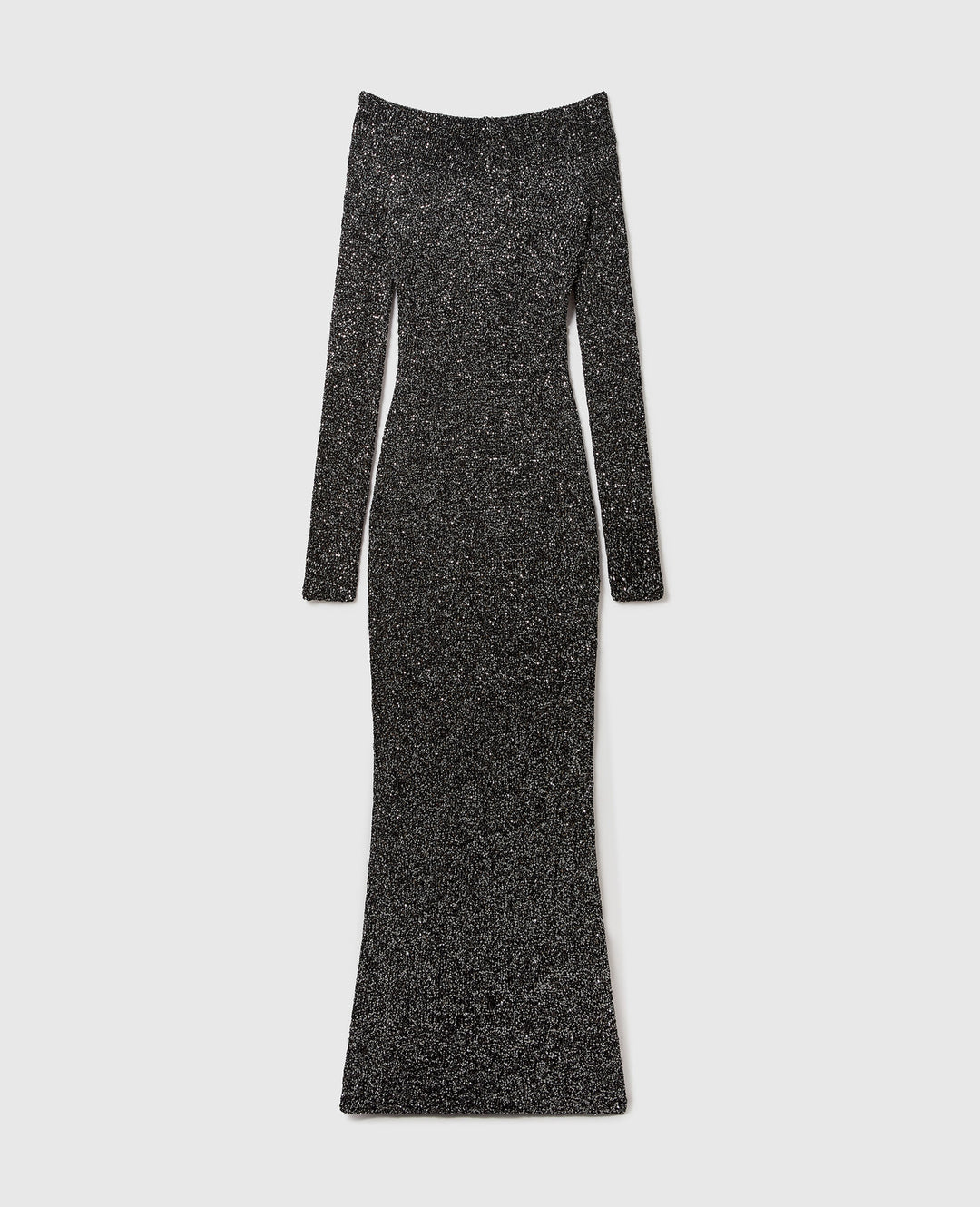 Sequin Off-Shoulder Floor-Length Dress - Black