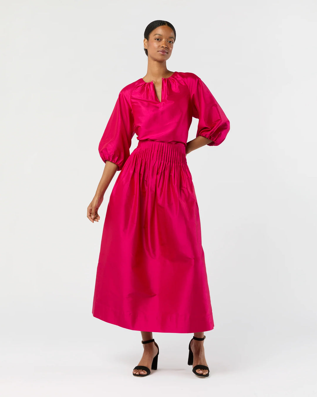 SAVANNAH TOP - Fuchsia Washed Silk Shantung