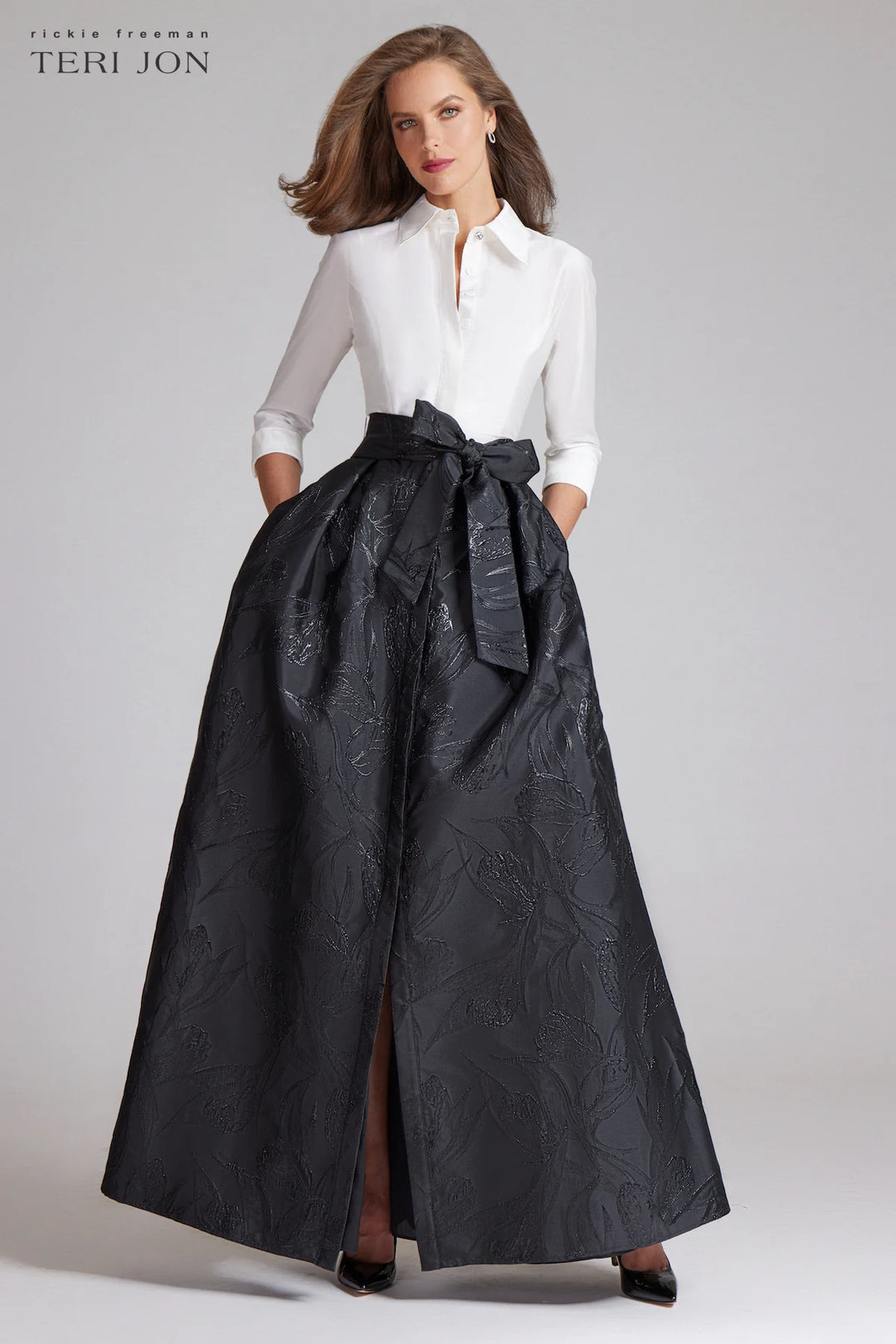 Taffeta Shirt Gown With Textured Jacquard Skirt - White/Black