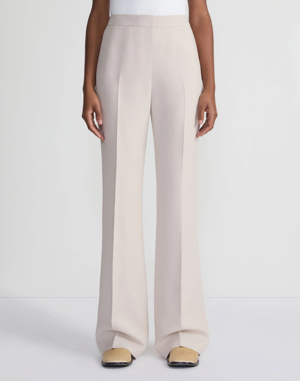 Wool-Silk Crepe Saint Marks Flared Pant - Pearl