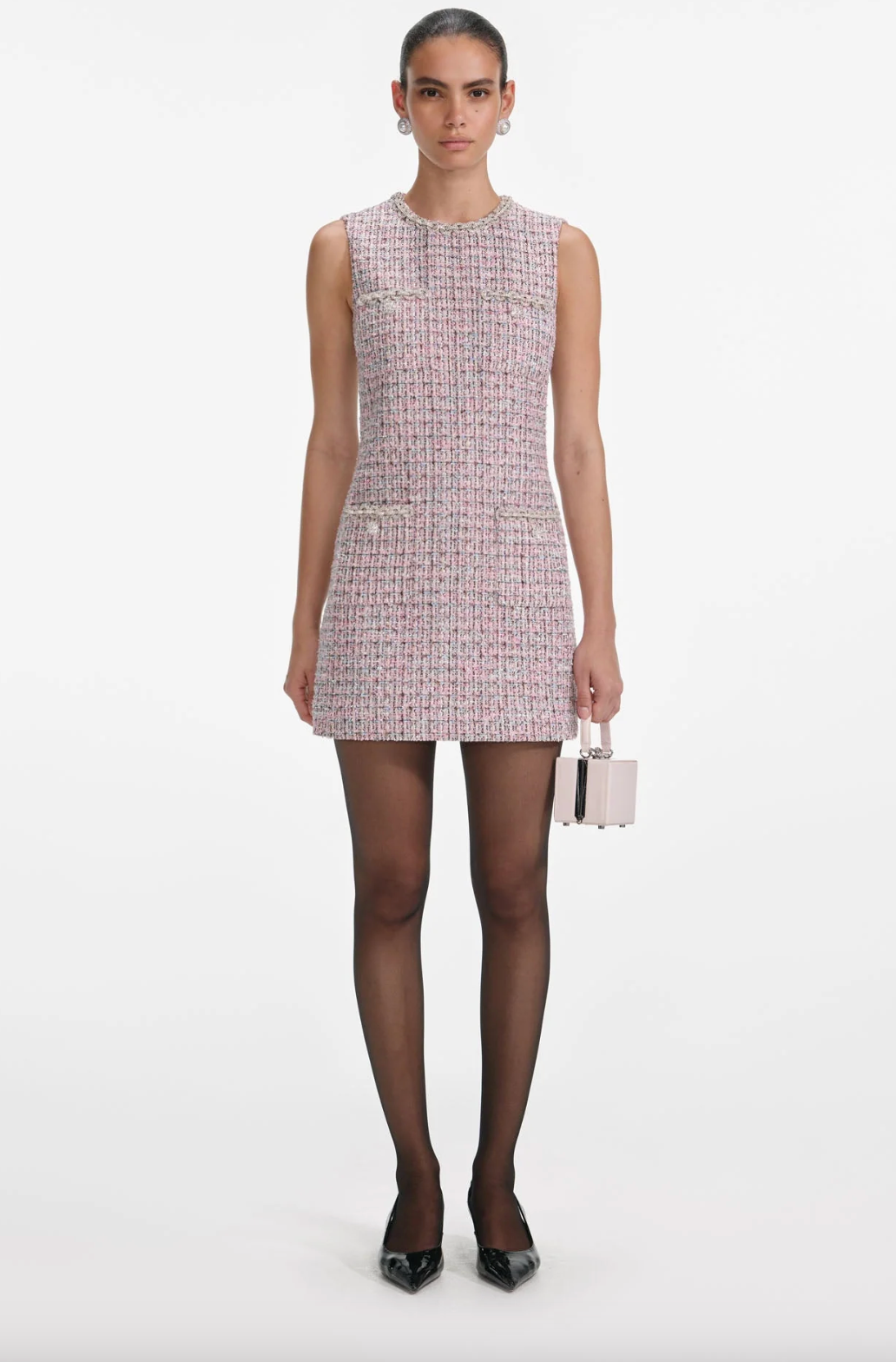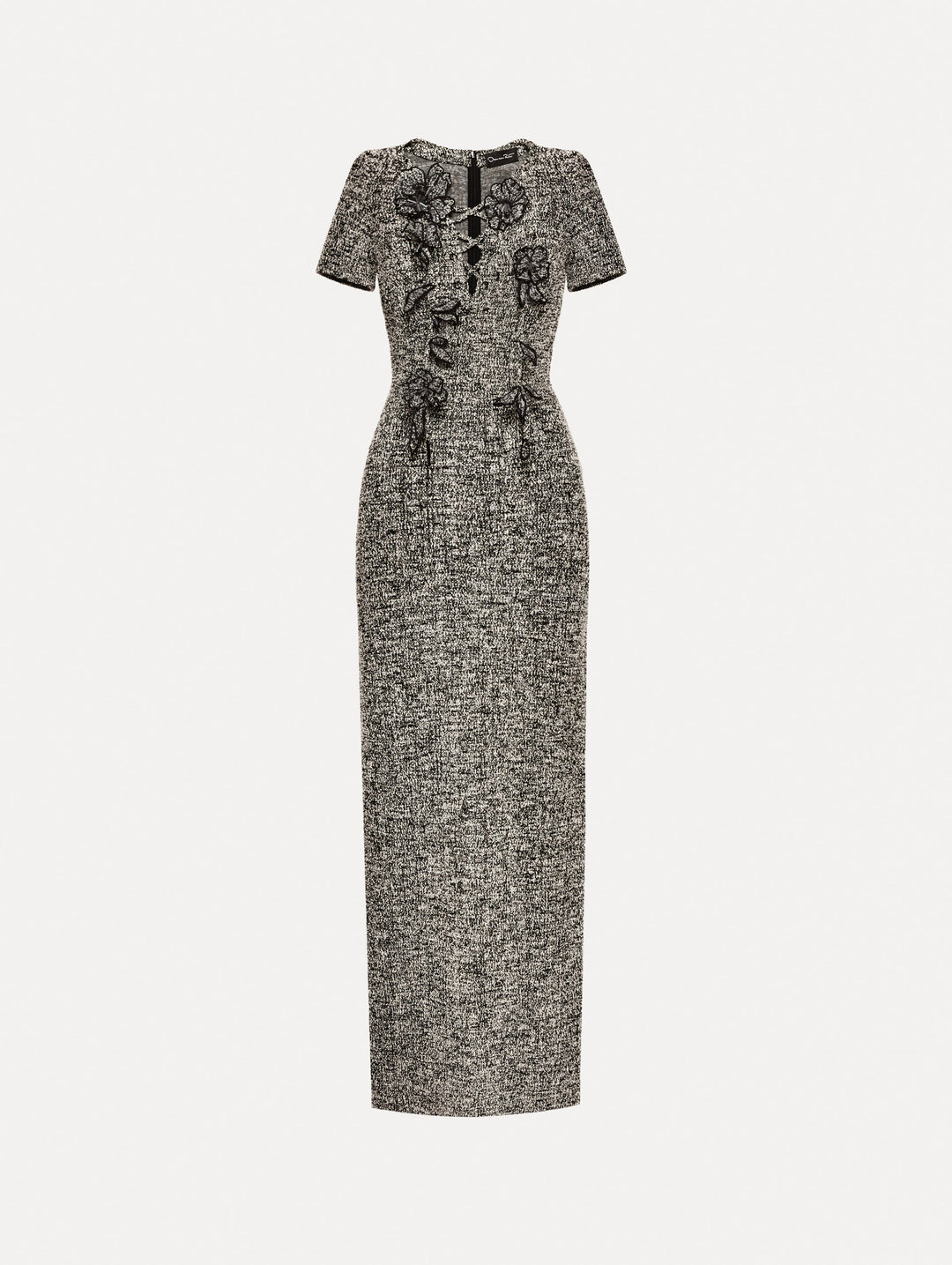 Bouclé Jersey Tweed Dress - Black/Ivory