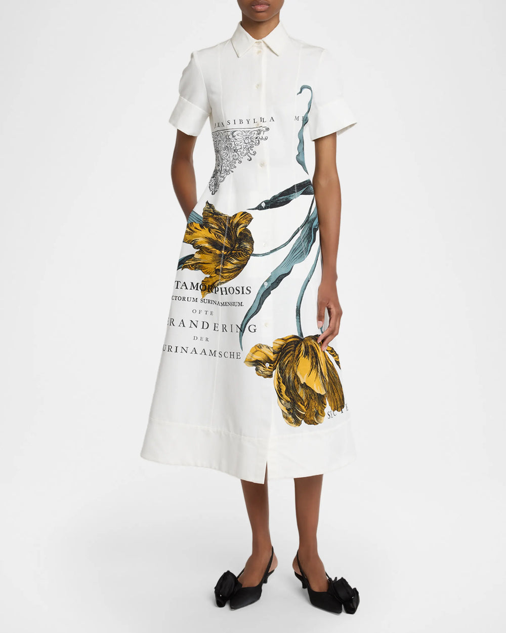 Floral-Print Cotton Faille Midi Dress - White Multi