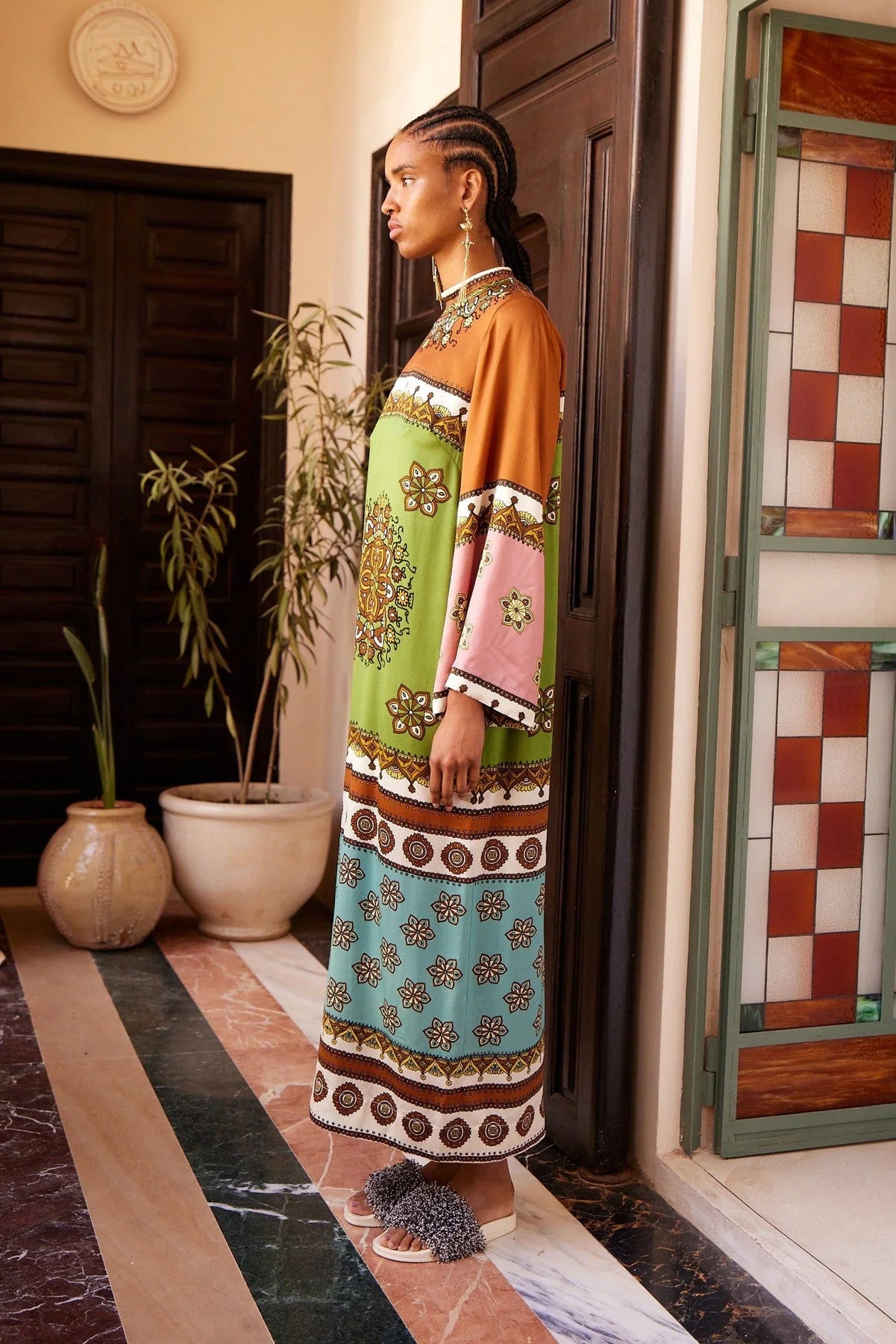 contina silk midi dress - Green Multi