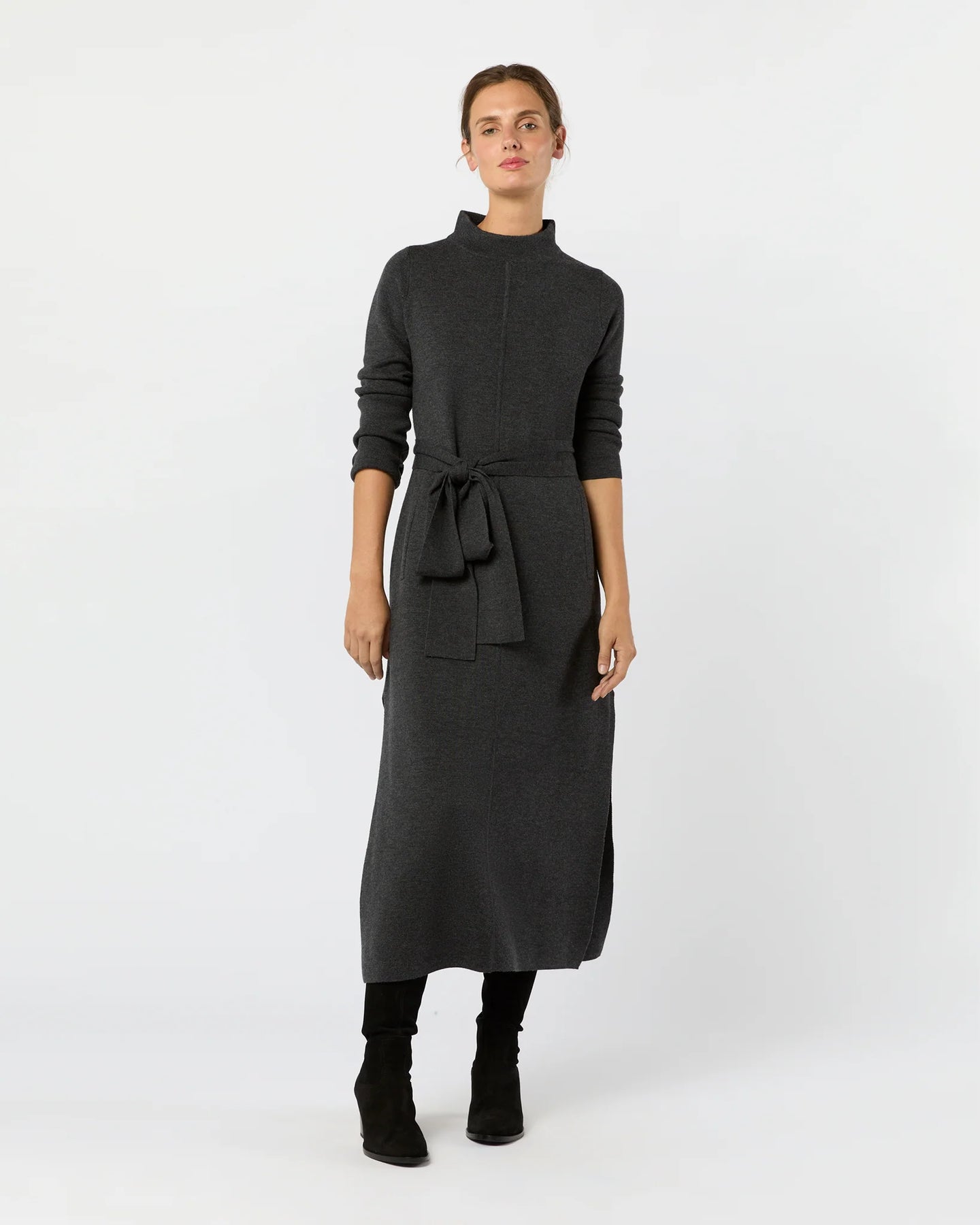 A new riff on the smooth, soft merino wool sweater dress you know and love, with a slightly longer hemline and a mock neckline. An instant outfit.