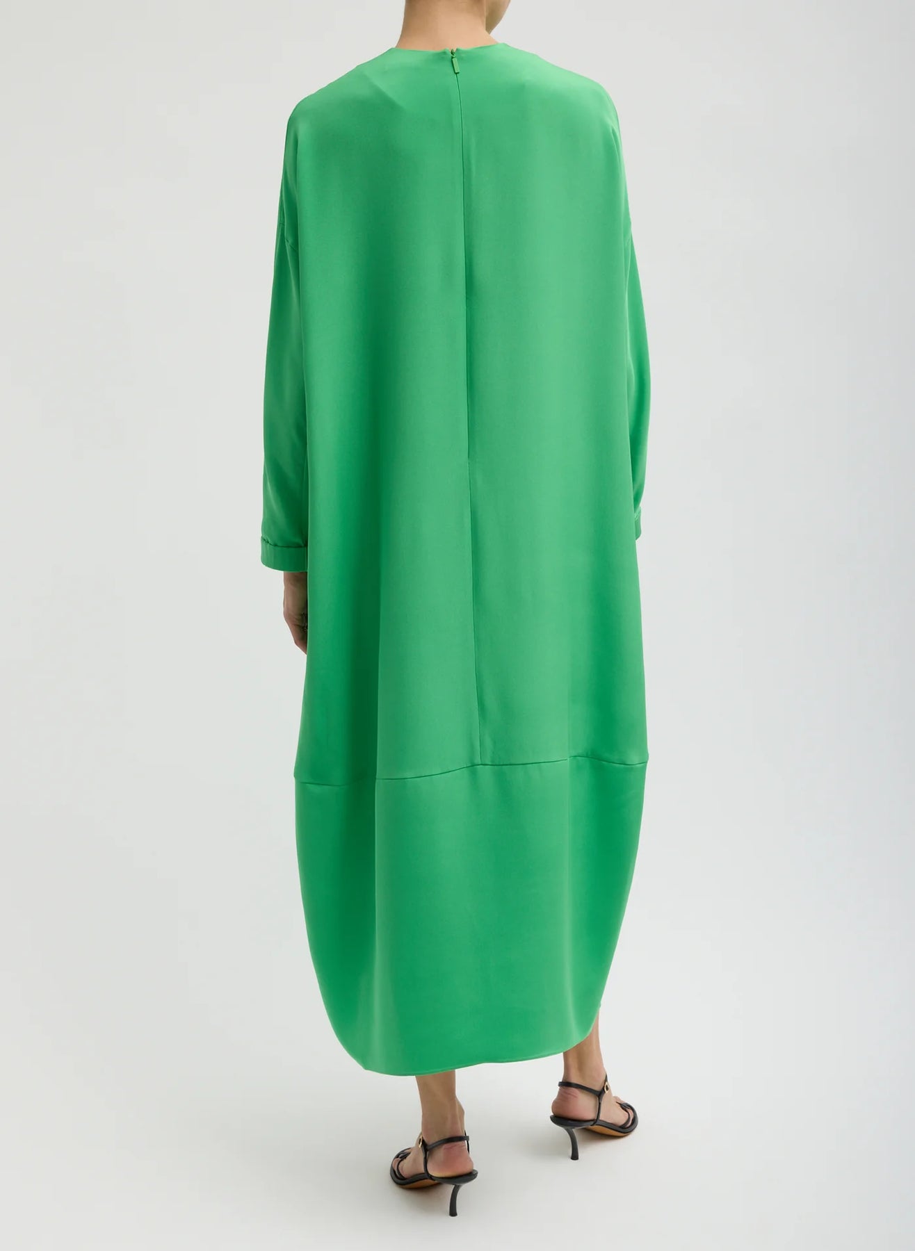 Crafted from heavyweight, sustainably produced silk, the 4-Ply Silk Long Sleeve Cocoon Dress is a true one-and-done piece. Designed with an eased silhouette, cocoon sleeves, side pockets, and a back zipper closure, it delivers effortless shape and subtle volume.