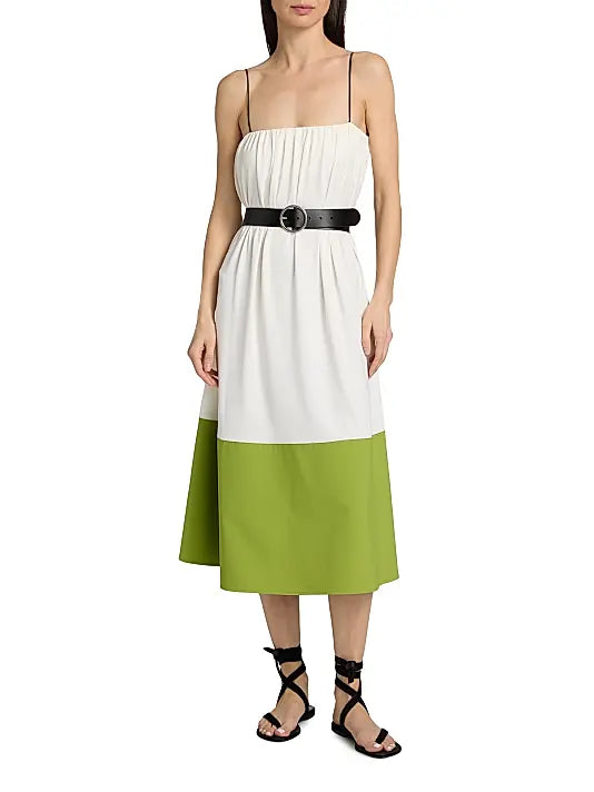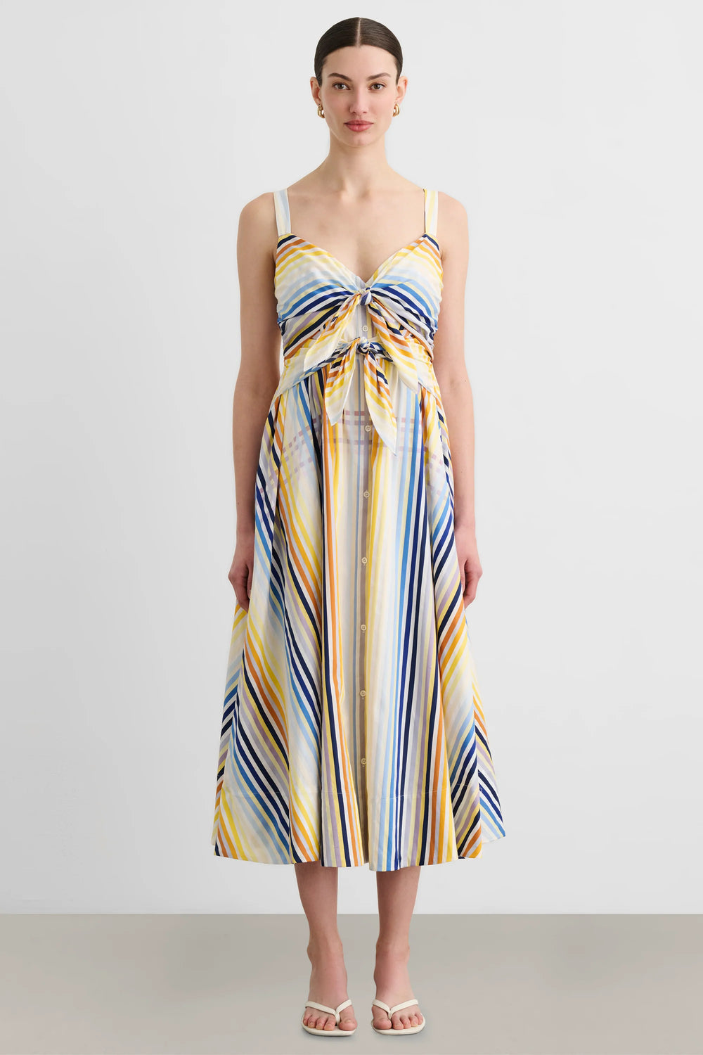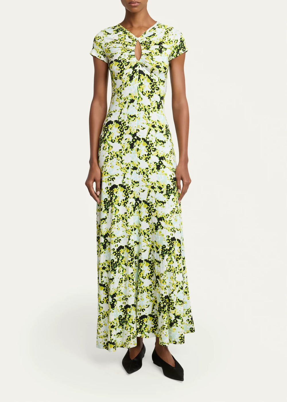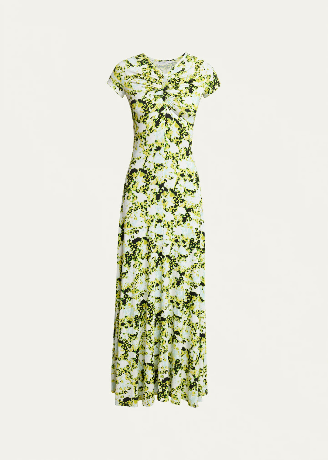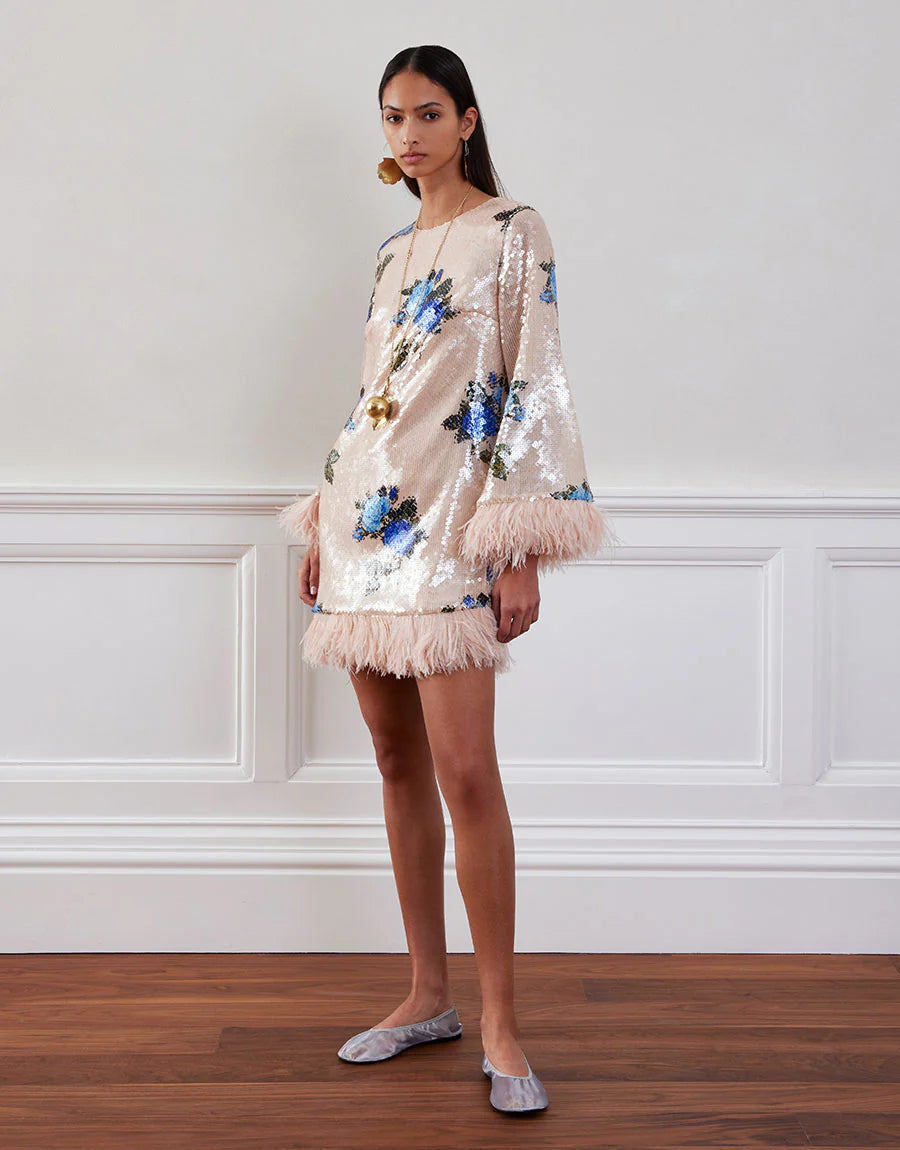 Cotton Flower Print Sleeve Full Skirt Dress - Pink Multi