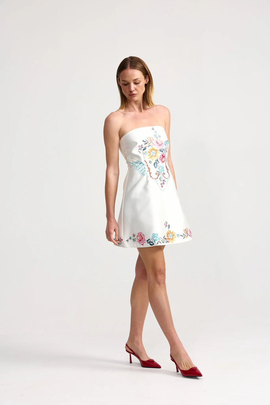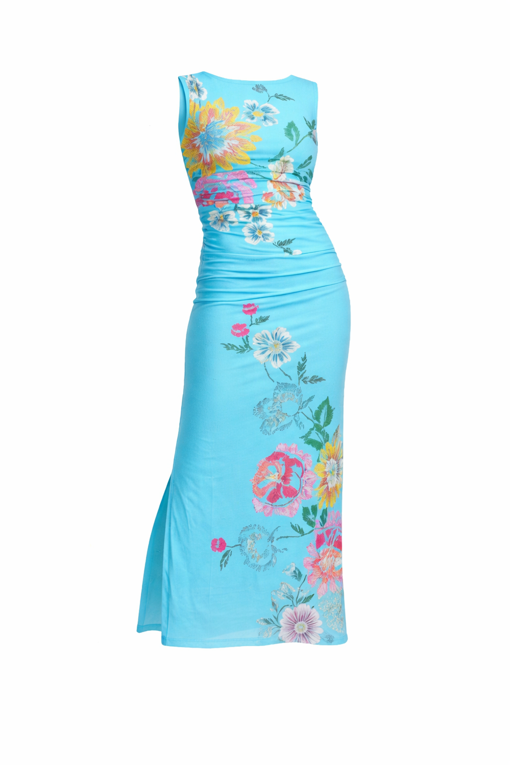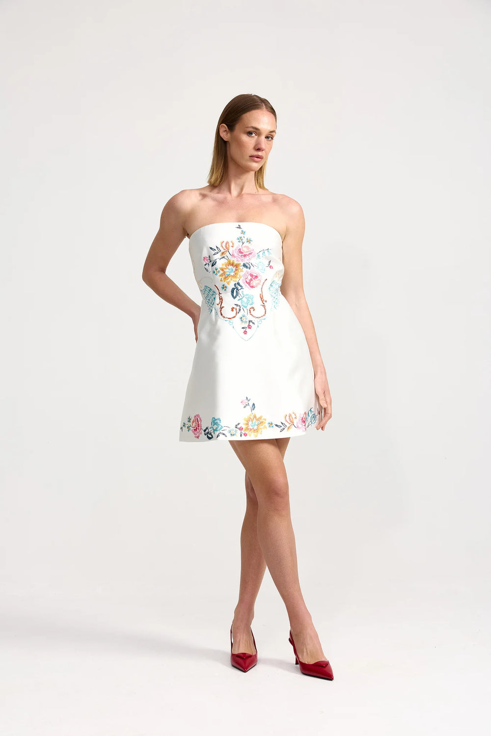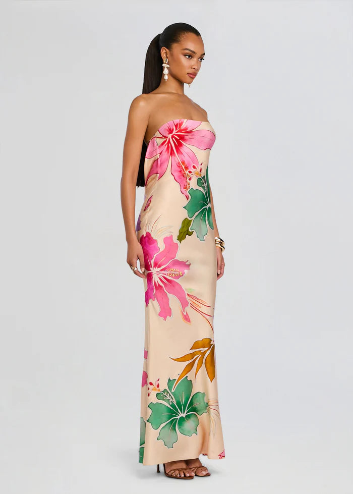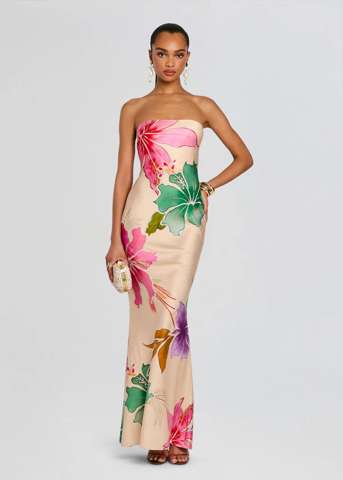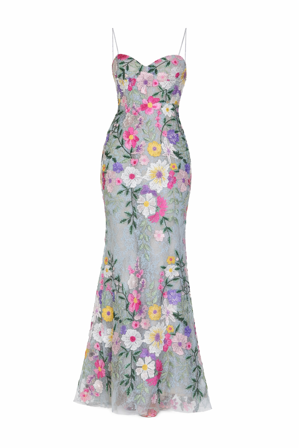 Floral Embroidered Sleeveless Bustier Gown - Green Multi