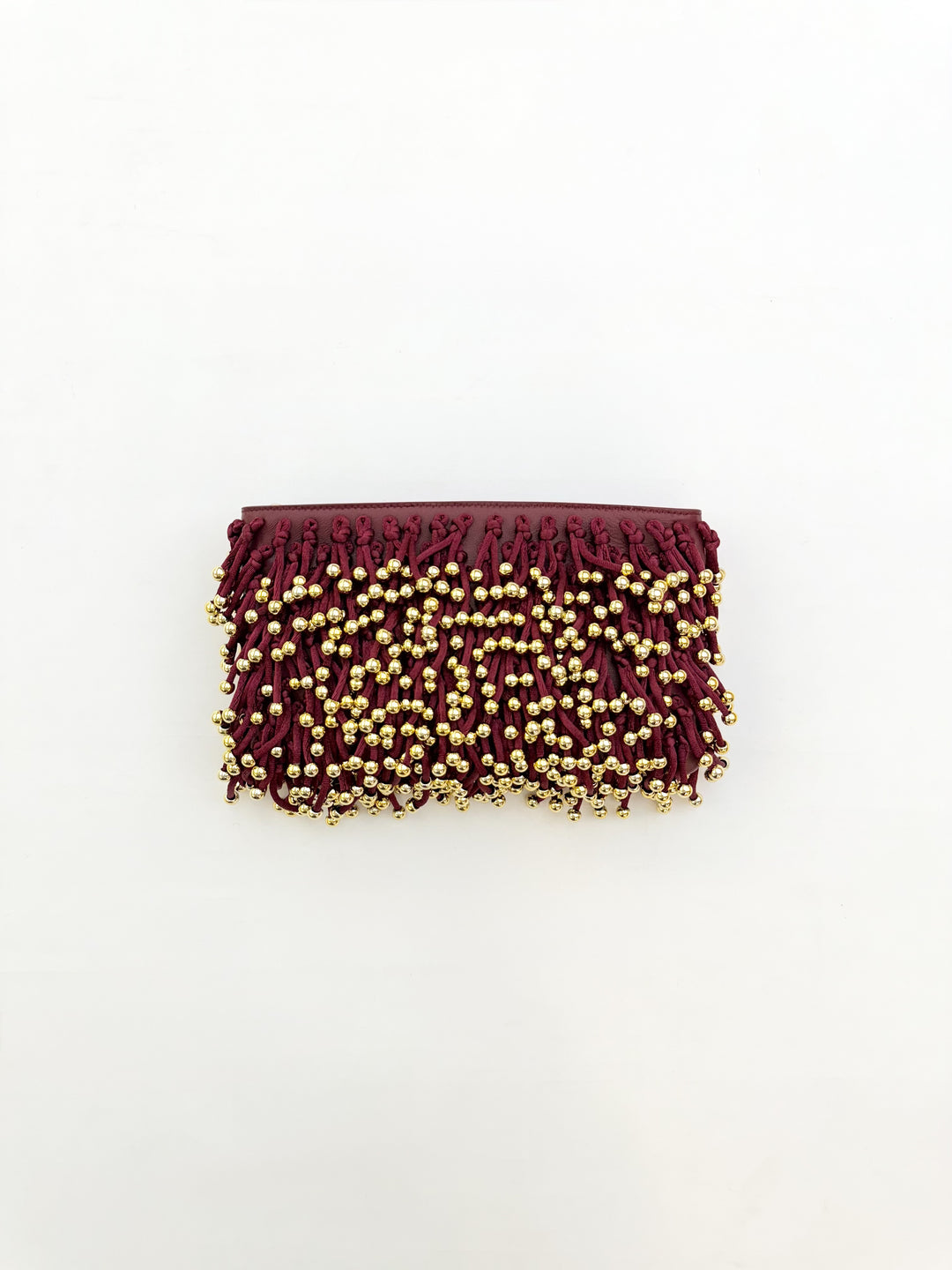 REESE BEADED FRINGE CLUTCH - Cranberry