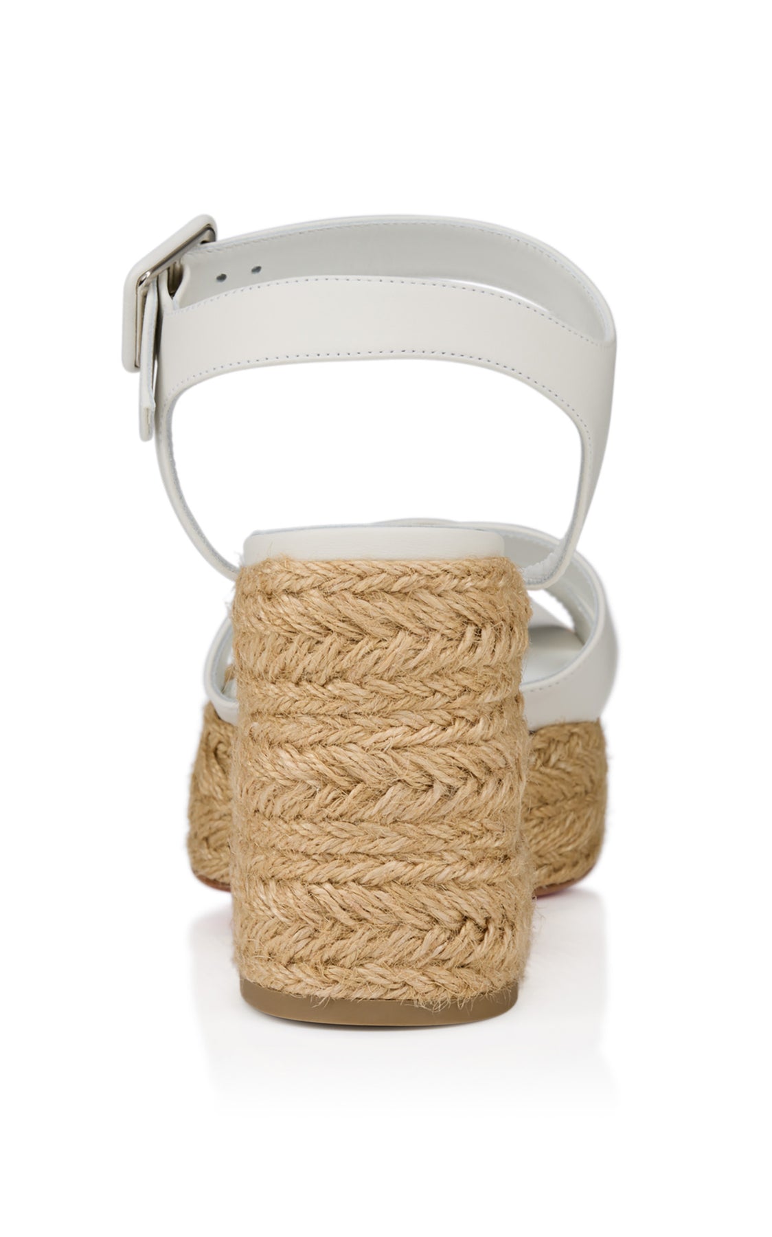 The Calakala sandal is a new twist on the traditional espadrille with a braided sole. This sophisticated, architectural style showcases Maison Christian Louboutin's creativity. The calf leather straps cross over the upper, while the ankle is held in place by leather straps and a metal clasp. It sits on a 85 mm heel.