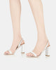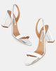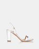 Glamorous, modern and refined: set your sights on our So Nude Block Sandals, destined to transform your look in an instant. Crafted in Italy, they feature a mirrored leather-effect finish in silver, an 85 mm block heel, and a foot-framing slingback strap. Buy now and cherish forever.