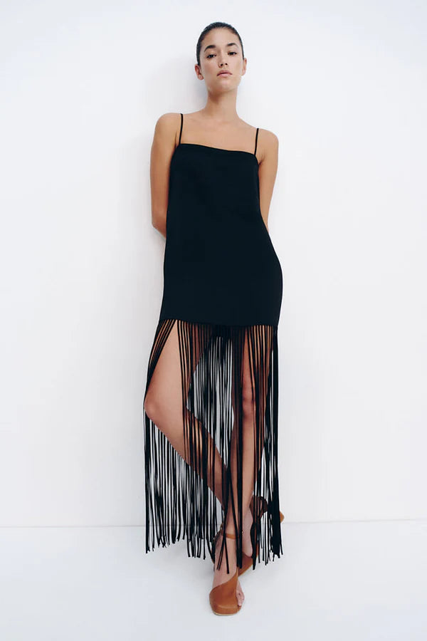 Straight shape that gently grazes the body's contours for effortless eleganceIf you are between sizes we recommend sizing up.