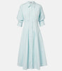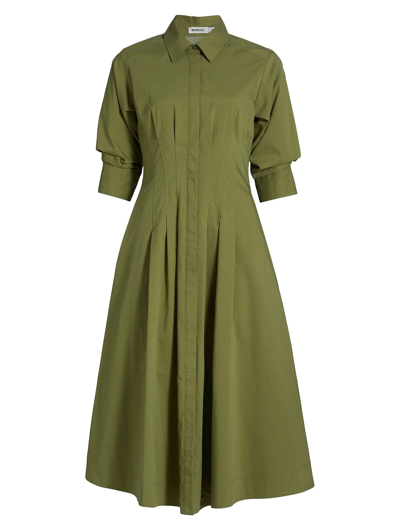Cut in an A-line silhouette, the Jazz cotton midi-shirtdress from SIMKHAI features scrunched-up elbow-length sleeves and pintuck detailing at the bodice for a fitted shape.