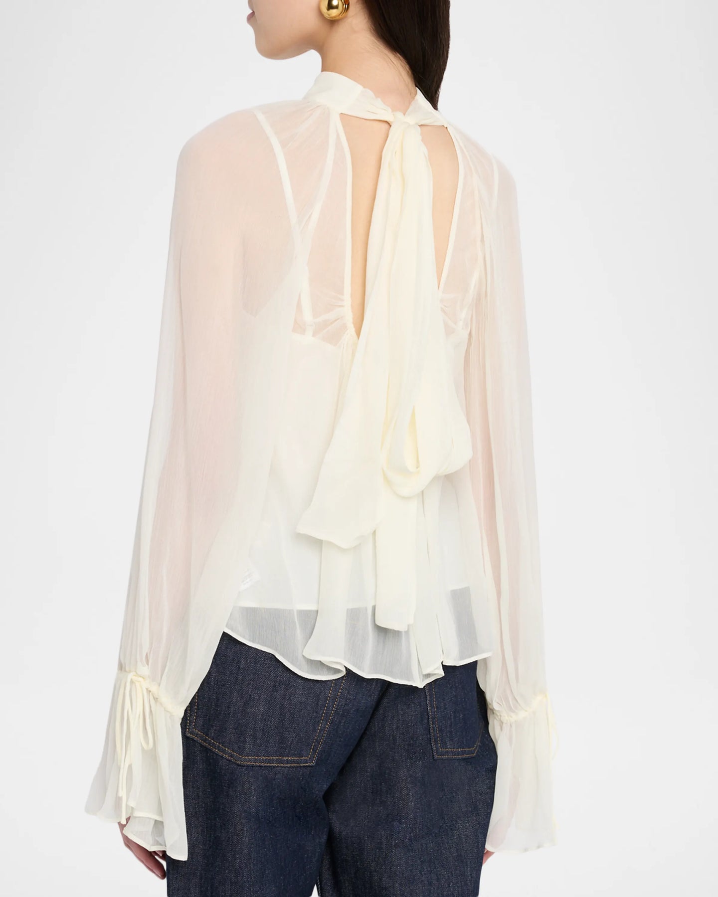 Staud's Roux top is made from a semi-sheer crinkled chiffon fabric with a bow-tie detail at the back, includes a removable under slip for added versatility.