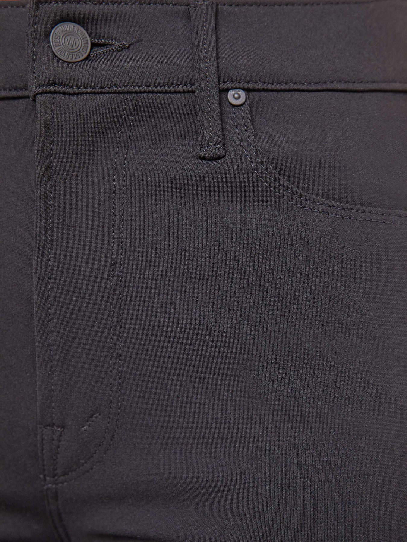 A classic high-rise flared trouser with a zip fly and a 34-inch inseam with a clean hem. Made from stretch fabric, the pants are designed in black with tonal hardware.