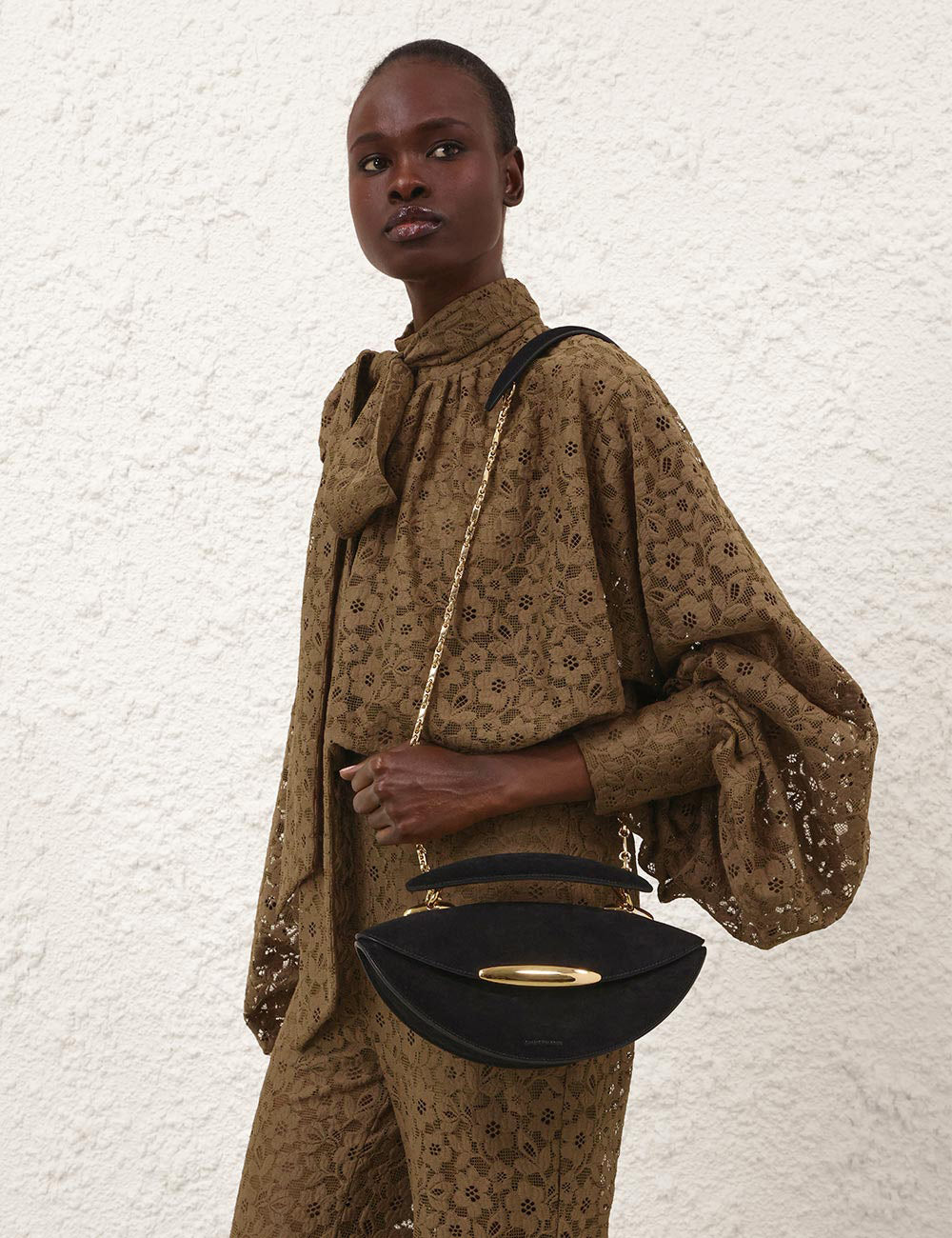 The Wavelength Top Handle is the perfect effortless addition to a layered outfit, with the option to carry by hand or sling over your shoulder. The silhouette takes inspiration from the iconic Australian surfboard with a sculptural, pure silhouette enriched with fluid golden metallic details.